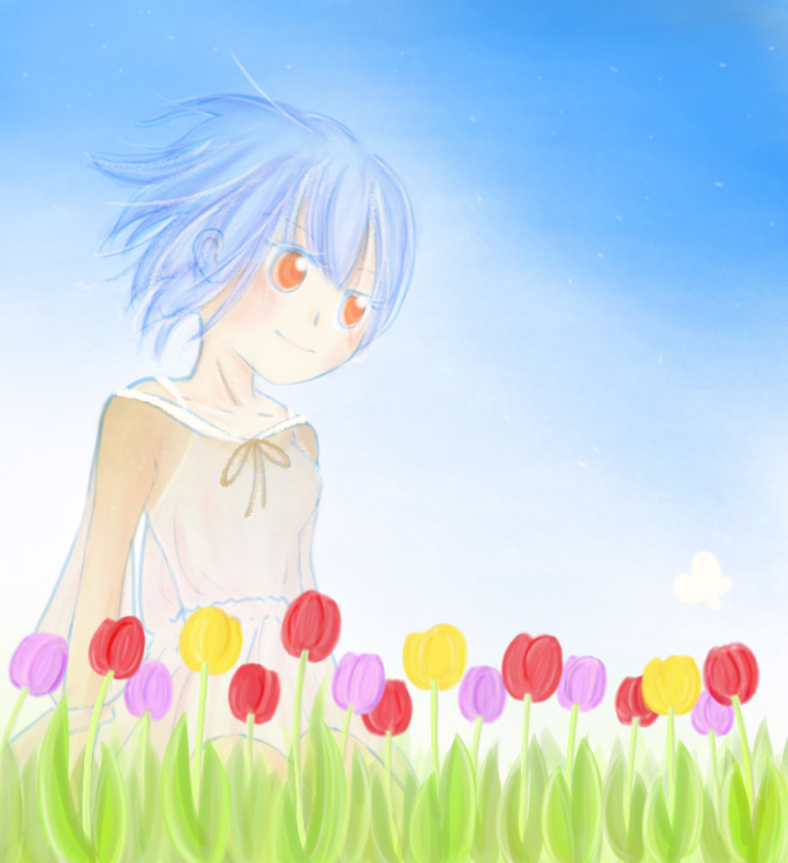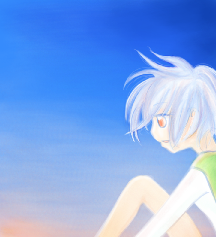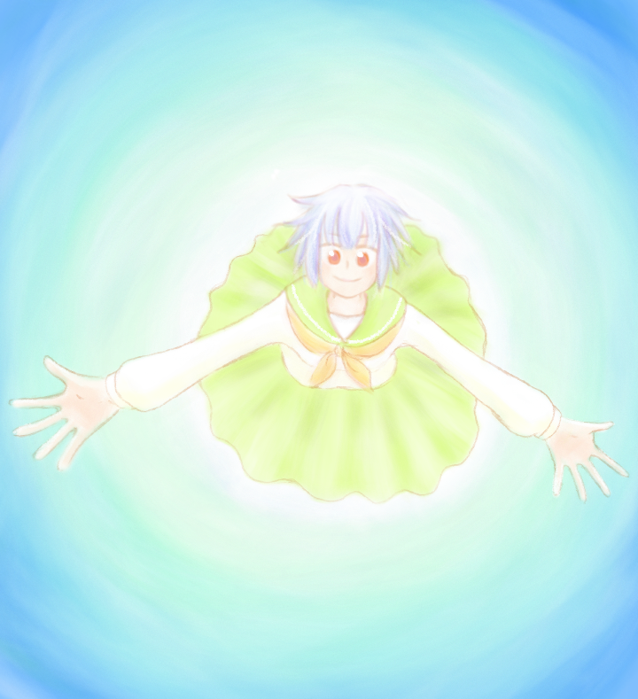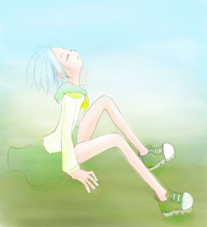 背景青と緑をそのまま服や髪の色に使って、影をつけたし