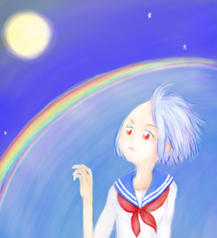 月虹 月に反射してかかる虹 光が弱いから本当は七色にならないそうです